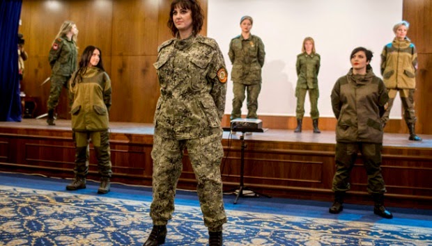 | Army beautiful woman in the People's Republic of Donetsk while Upper Catwalk |